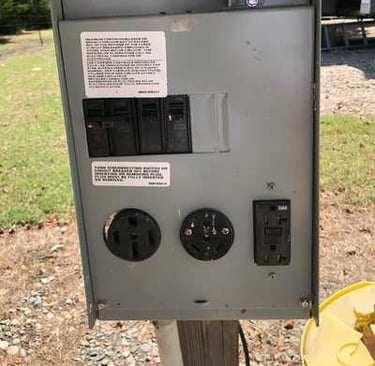 ⚠️ Important Note: The 30-amp breaker at the pedestal was also weak and tripping easily—even with a single A/C unit running. I notified the campground and requested they replace the breaker along with repairing the faulty 50-amp socket.